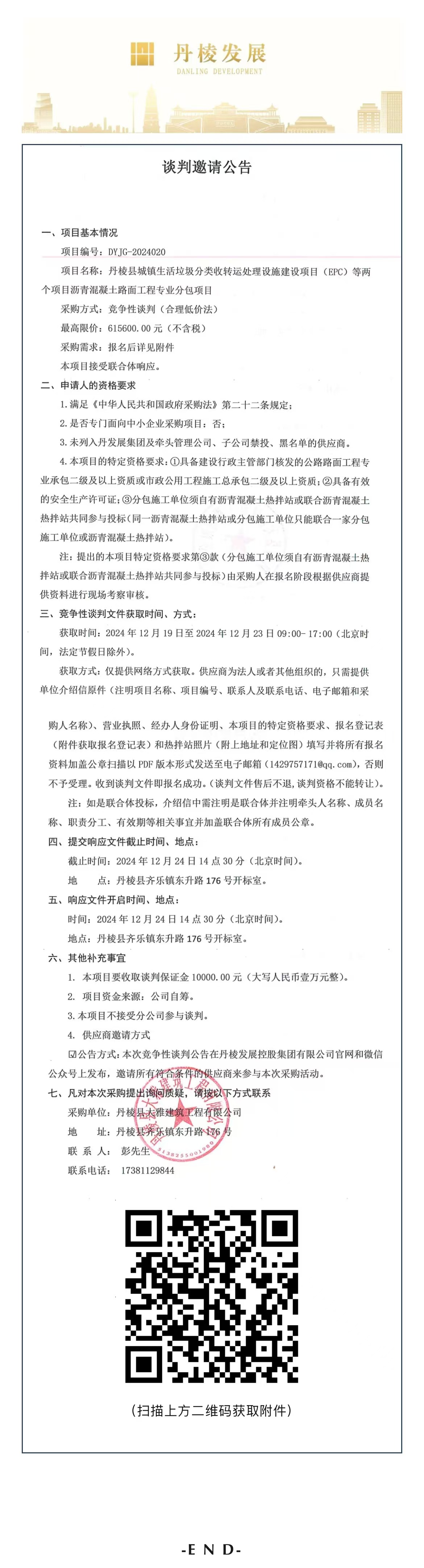 丹棱縣城鎮(zhèn)生活垃圾分類收轉運處理設施建設項目(EPC)等兩個項目瀝青混凝土路面工程專業(yè)分包項目談判邀請公告