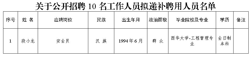 附件:關于公開招聘10名工作人員擬遞補聘用人員名單