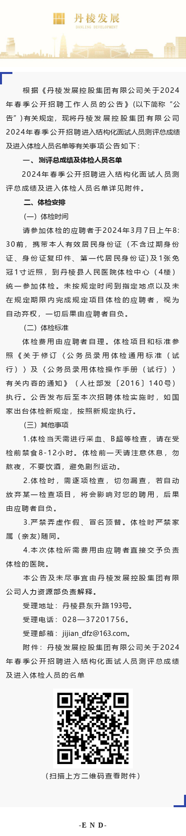 丹棱發(fā)展控股集團有限公司關(guān)于2024年春季公開招聘進入結(jié)構(gòu)化面試人員測評總成績及進入體檢人員的公告