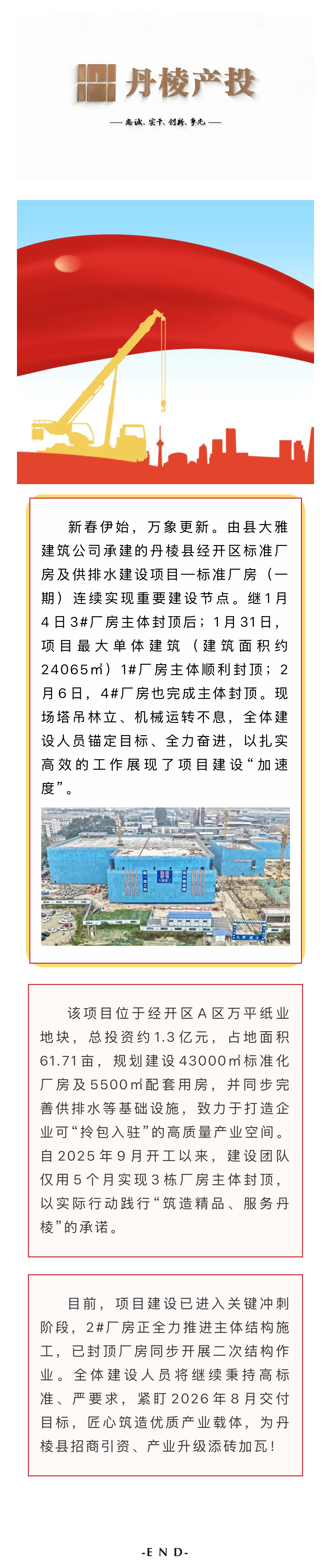 【縣大雅建筑公司】筑跡:丹棱縣經開區(qū)標準廠房及供排水建設項目—標準廠房(一期)捷報頻傳,多棟廠房相繼封頂