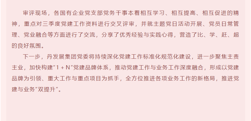 丹發(fā)展集團(tuán)黨委開展三季度黨建“聯(lián)審聯(lián)評(píng)”工作