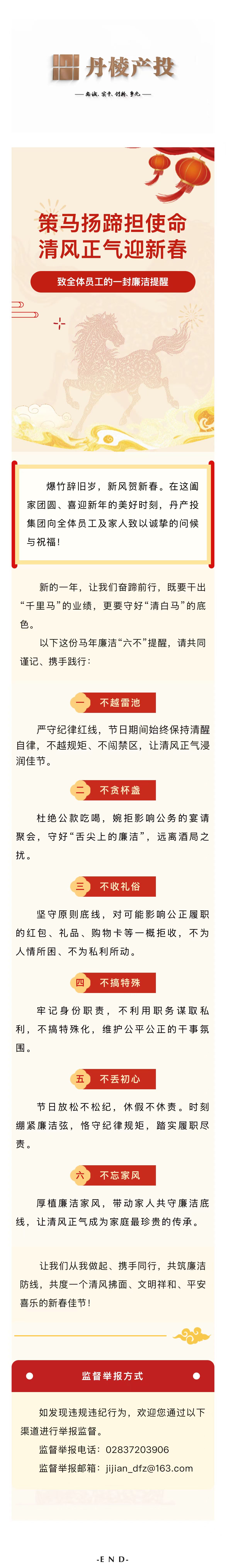 【節(jié)日紀(jì)語】策馬揚(yáng)蹄擔(dān)使命 清風(fēng)正氣迎新春——致全體員工的一封廉潔提醒
