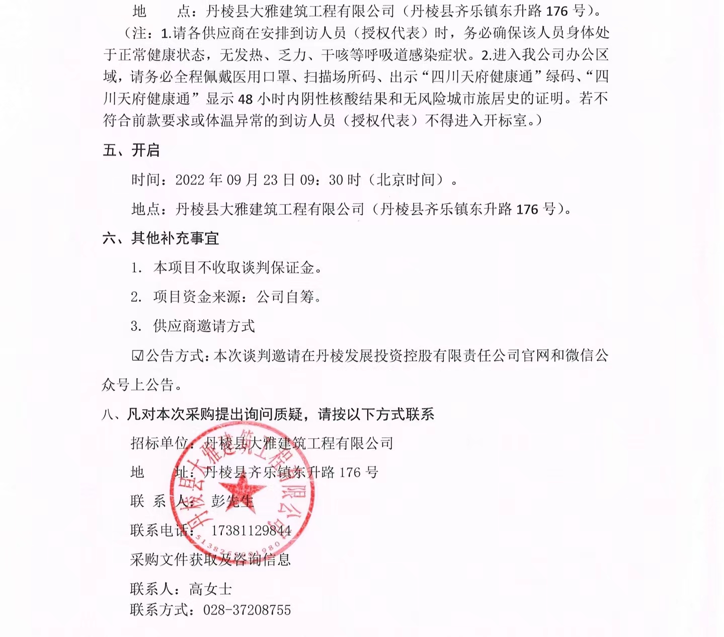 丹棱縣全域農(nóng)旅融合仁美鎮(zhèn)生態(tài)濕地公園(社區(qū)公園)、廣場及配套旅游設(shè)施建設(shè)項目稻田餐廳工程幕墻專業(yè)分包項目談判邀請公告