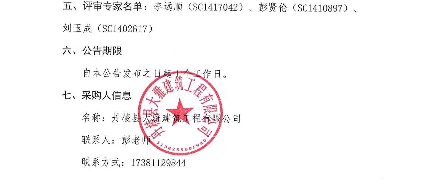 丹棱縣熊河碥片區(qū)市政基礎設施建設項目一期(城市雙修)設計施工總承包(EPC)透水瀝青混凝土工程專業(yè)分包項目成交結果公告