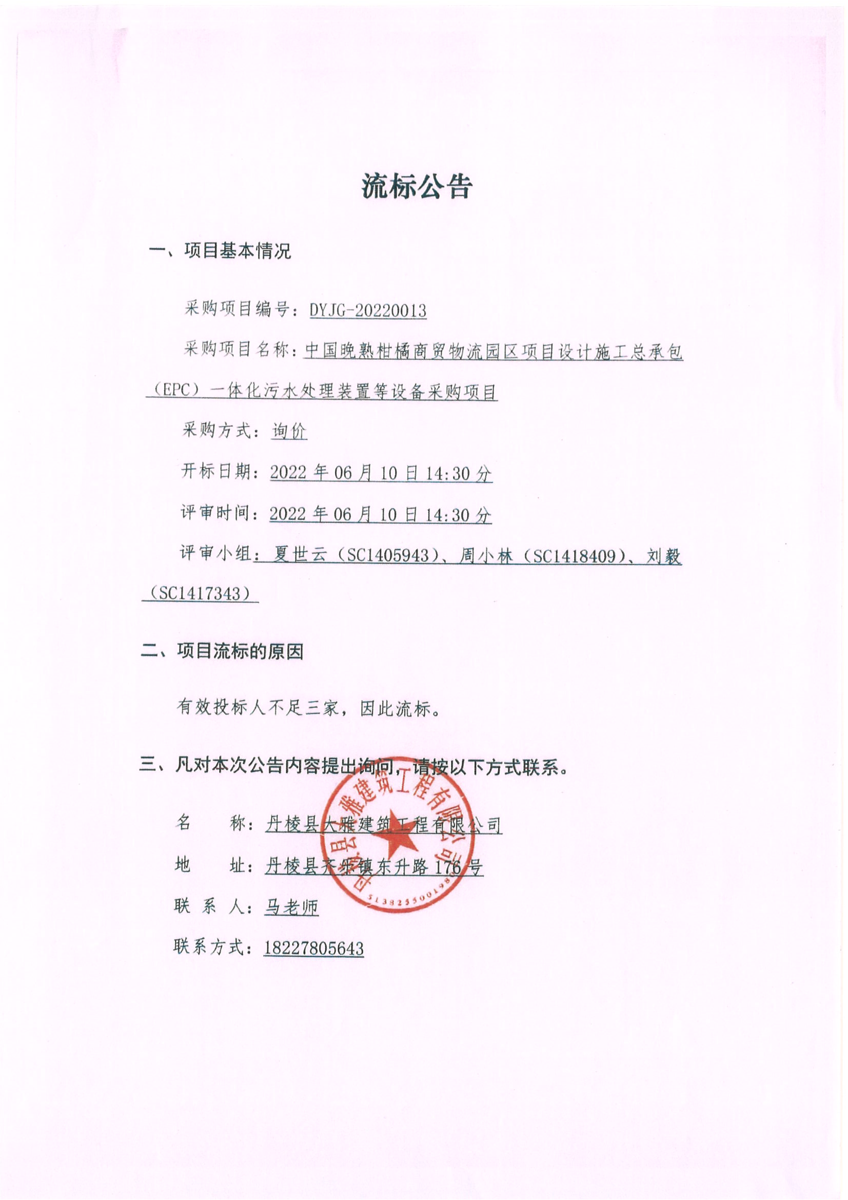中國晚熟柑橘商貿(mào)物流園區(qū)項目設計施工總承包(EPC)一體化污水處理裝置等設備采購項目流標公告