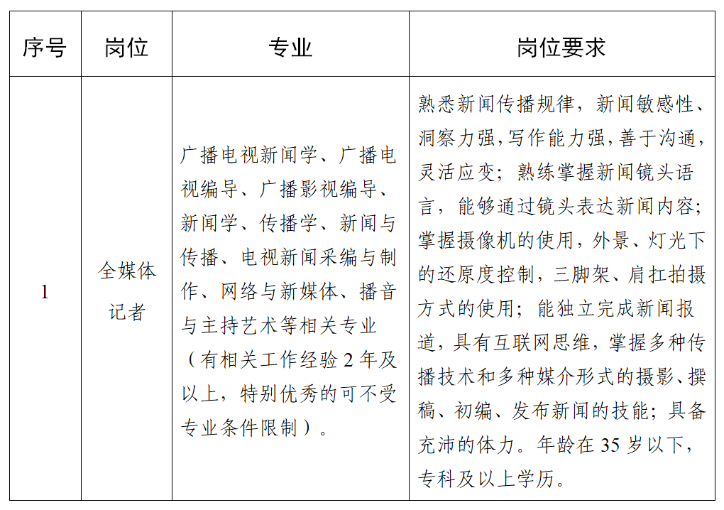 因業(yè)務發(fā)展需要,丹棱縣融媒體中心委托丹棱縣大雅家園勞務服務有限公司面向社會公開招聘全媒體記者1名,具體內(nèi)容如下: