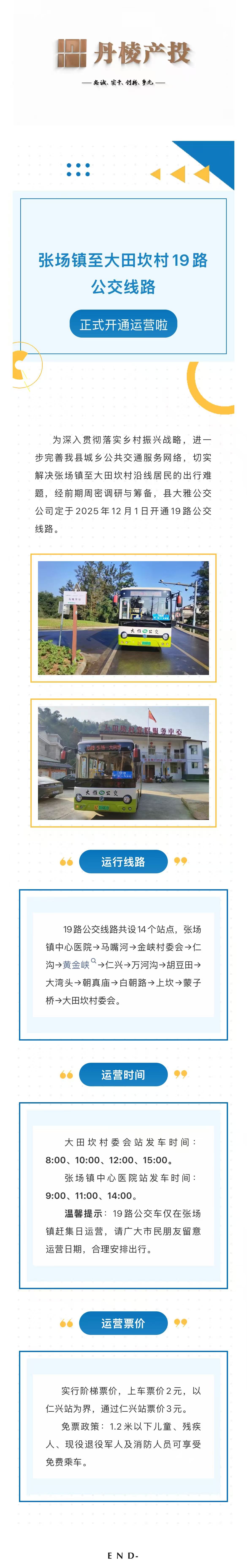 張場(chǎng)鎮(zhèn)至大田坎村19路公交線路正式開(kāi)通運(yùn)營(yíng)啦!