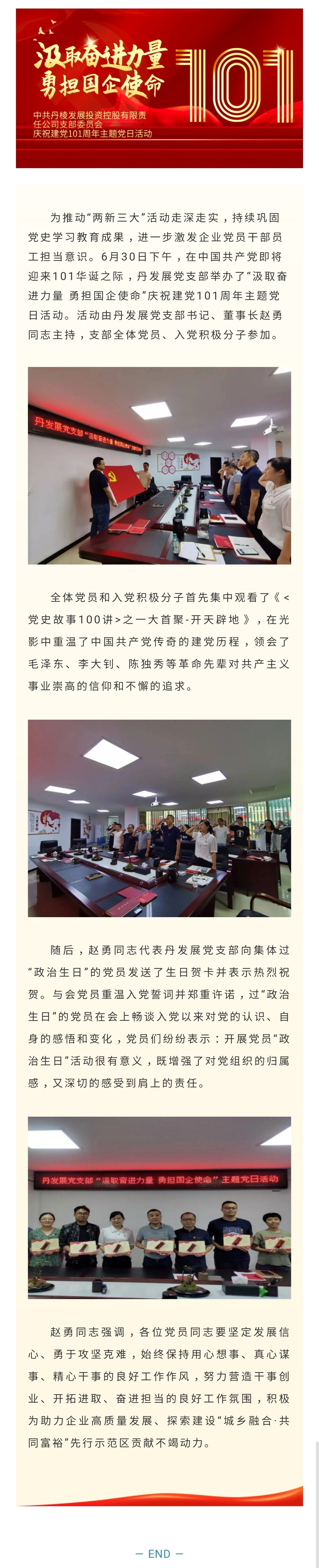 中共丹棱發(fā)展投資控股有限責(zé)任公司支部委員會“汲取奮進(jìn)力量 勇?lián)鷩笫姑睉c祝建黨101周年主題黨日活動