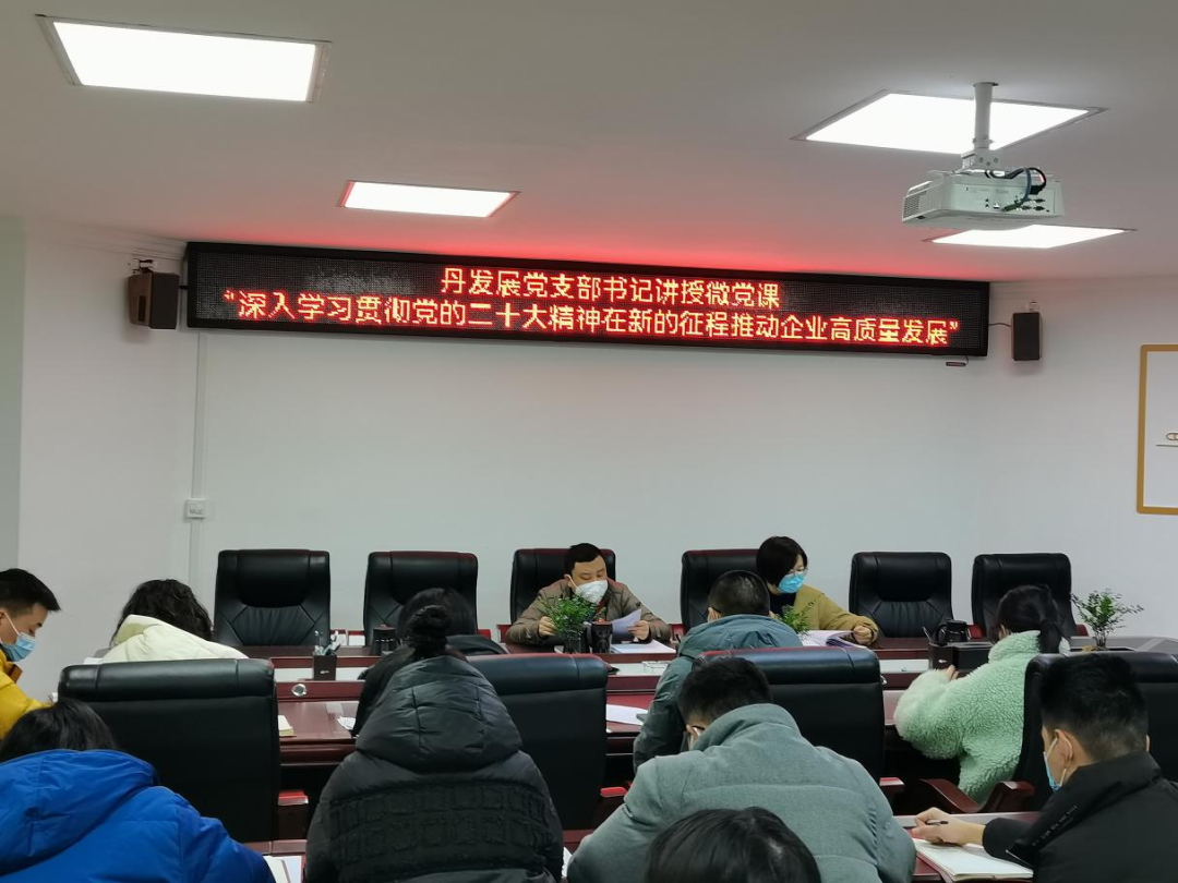 按照縣委《關(guān)于認(rèn)真學(xué)習(xí)宣傳貫徹黨的二十大精神的通知》相關(guān)要求,12月16日,丹發(fā)展黨支部召開(kāi)黨員(擴(kuò)大)會(huì)議,由支部書(shū)記講黨課,學(xué)習(xí)貫徹黨的二十大精神。丹發(fā)展公司全體黨員及員工參加。
